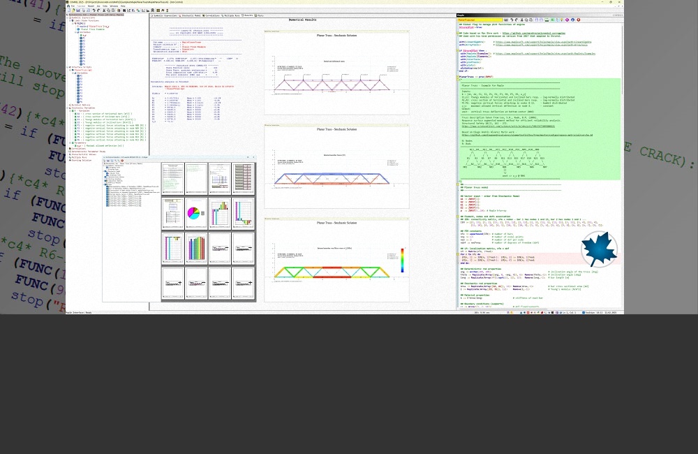 The 2025 release of STRUREL including Comrel, Sysrel and Costrel provides considerably improved handling of interfaces to Maplesoft Maple, Wolfram Research Mathematica, MathWorks Matlab, Python, Ruby, GNU Octave, R, Scilab, Aptech GAUSS engines and newly developed seamless integration for FORTRAN and C/C++ languages. Sophisticated technology to create so called Buildout Add-ons on the fly using latest versions of well-known compilers, such as GNU Fortran/C++, INTEL oneAPI Fortran and Microsoft Visual C++ was implemented. Editing source code is almost identical as for scripts of interpreting engines. A built-in Script Editor provides a syntax coloring, folding support with hot areas for collapsible nodes, automatic detection of URL as a clickable link, braces highlighting, extended RTF export, deep error tracing and numerical evaluation on the fly. STRUREL can now handle MAT and HDF5 files in each interface. Before execution of a changed script the engine will be automatically restarted. In the case of altered source file, a new state of Buildout Add-on will be manufactured and used on the fly. The implementation of special prologue/epilogue function RF99 optimizes visualization of results. Additionally, FORTRAN and C/C++ interfaces contain a simplified built-in connection to Gnuplot that allows produce a wide range of plots too. To provide a quick overview of the examples and to get a feeling of the GUI facilities a very powerful Start-Up Dialog was implemented. Now it is also possible to operate just the numerical core of each module for automation purposes. For example, some external application may call the STRUREL program in an iterative loop for predefined input model and update parameters of interest until some aim is reached. We proudly announce the first successful automation of commercial FEM Suites - FEMAP/NASTRAN and PLAXIS from STRUREL via its Python interface. Furthermore, there are: Retranslator Mathematical Formulas (RMF) that converts text formulae back into mathematical notation, a Help system based on PDF standard, context sensitive help for the Symbolic Expressions Editor, simplified interface functions to all script-based engines, comfortable Run control. The new version of Add-on Creator 2 allows to easily build STRUREL custom Add-Ons. Each standard interface now can generate a Run Script file that encloses all steps of a reliability analysis using the language of the corresponding engine. Therefore, it is possible to execute a bundle of a Run Script together with the corresponding script of the state function on Windows, Linux and macOS without invoking STRUREL software.